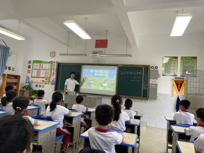 接著,陳澤冰老師為四5班的同學帶來了一節(jié)融合教育班會課——《不可思議的朋友》。本次主題班會活動由四個部分組成。陳老師通過圖片的展示,讓學生知道世界上,有這樣一群小天使,他們悄悄來到我們的身邊卻遙不可及,他們被稱為“星星的孩子”。過渡到繪本《不可思議的朋友》的閱讀。接下來,陳老師通過提問讓學生帶著疑問進行閱讀,并適時引導?;顒幼詈?,陳老師讓孩子們談談自己的感悟,談談在校園中應該如何與“星星的孩子”相處。孩子們暢所欲言,在整個課堂學習的過程中,學生們始終保持濃厚的學習興趣和愉快的學習情緒,開展此次活動的目的在于讓學生親自體悟,在對待特殊同伴時有了更多的理解與包容。
