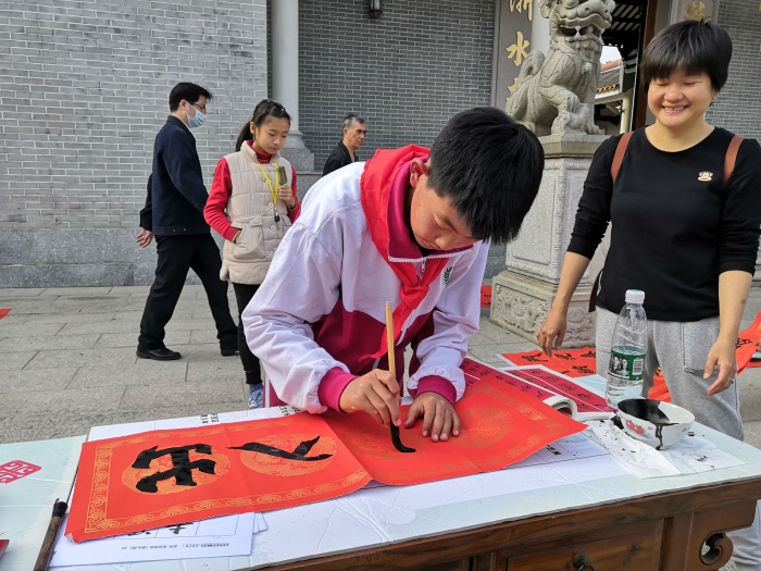 1月28日下午,李堆威、丘志偉兩位老師帶領(lǐng)著開發(fā)區(qū)第一小學(xué)書法社團(tuán)的學(xué)生參加了由火炬區(qū)書法中心教研組與濠頭聯(lián)富社區(qū)聯(lián)合舉行的“迎新春送春聯(lián)”活動(dòng)。當(dāng)天活動(dòng)現(xiàn)場處處洋溢著濃濃的新年節(jié)日氛圍,開發(fā)區(qū)第一小學(xué)書法社團(tuán)的“小書法家”們自信大膽地展現(xiàn)了扎實(shí)的書法功底,得到了社區(qū)居民一致稱贊。短短的2個(gè)小時(shí),開發(fā)區(qū)第一小學(xué)的“小書法家”們書寫了近百幅春聯(lián),將這些春聯(lián)凝結(jié)成一份份美好的祝福,真摯地送給社區(qū)居民。