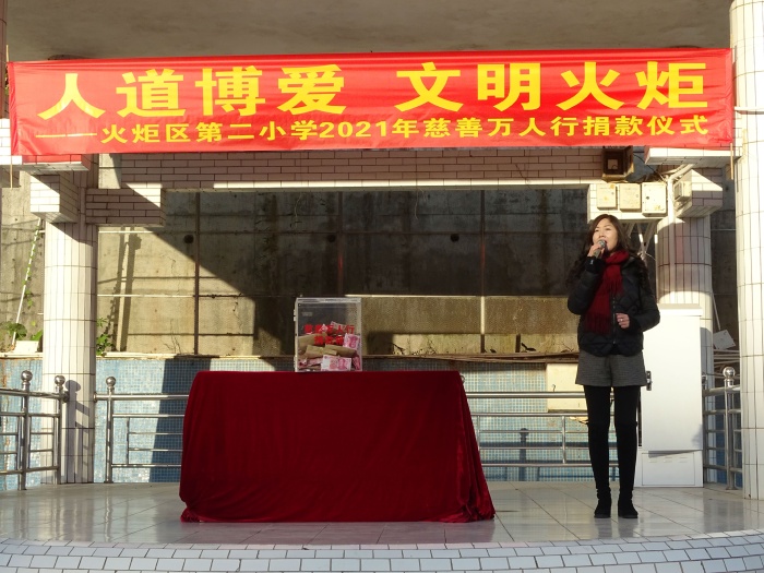 為積極響應(yīng)2021年市、區(qū)慈善萬(wàn)人行活動(dòng)倡議,弘揚(yáng)人道博愛精神,倡導(dǎo)中華美德,唱響新時(shí)代主旋律,營(yíng)造互幫互助互愛的社會(huì)氛圍,為建設(shè)文明火炬區(qū)加快高質(zhì)量崛起貢獻(xiàn)力量,2020年12月31日上午,開發(fā)區(qū)第二小學(xué)舉行主題為“人道博愛,文明火炬”2021年慈善萬(wàn)人行義捐活動(dòng)。
