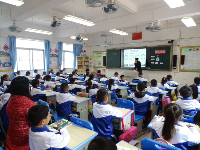 特色展示結(jié)束后,家長們陸續(xù)走進課堂。本次開放日活動,學(xué)校共展示了包括語、數(shù)、英及美術(shù)、體育、音樂等學(xué)科在內(nèi)的40多節(jié)課。課堂上,老師們積極引導(dǎo)學(xué)生進行自主探究,開展合作學(xué)習(xí),并利用多媒體輔助教學(xué),使學(xué)生在輕松愉快的氛圍中掌握所學(xué)內(nèi)容。家長們看在眼里記在心里,他們關(guān)注著自己孩子在課堂上的學(xué)習(xí)狀態(tài),不時情不自禁地為老師和自己孩子的精彩表現(xiàn)而露出會心的微笑,有的家長還拿出相機、手機拍下了一個個難忘的瞬間……雖然每節(jié)課只有短短四十分鐘,但是孩子們精彩的表現(xiàn)、積極的學(xué)習(xí)勁頭和老師們嫻熟的教學(xué)技能贏得了家長們的一致好評。課后,各個班級開展有趣的活動,如家長進課堂送教、才藝表演、故事會等,家長積極參與活動,表現(xiàn)出極高的熱情,班級氣氛熱烈。