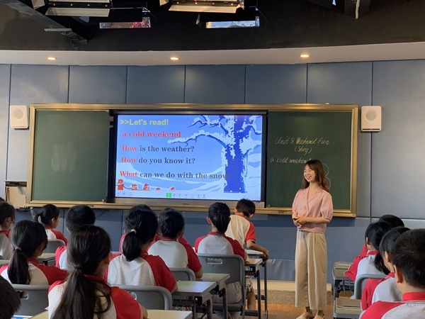首先,博凱小學(xué)的游彩霞老師圍繞課題上了一節(jié)故事示范課。游老師執(zhí)教的是四年級下學(xué)期《Weekend Fun》story部分。游老師以節(jié)奏歡快的英語歌曲熱場,地道的英語發(fā)音,極強的表現(xiàn)力和感染力,讓課堂充滿了激情和活力。學(xué)生在輕松愉快的氛圍中發(fā)展了語言和思維,在情景中體驗著學(xué)習(xí)英語的快樂。游老師根據(jù)故事內(nèi)容,以圖片環(huán)游的方式幫助學(xué)生去理解故事內(nèi)容。通過創(chuàng)設(shè)情境,引導(dǎo)學(xué)生觀察圖片,并根據(jù)故事文本設(shè)置了不同的問題,由簡入難層層深入故事學(xué)習(xí)。課堂教學(xué)環(huán)節(jié)科學(xué)有效,很好的實現(xiàn)了教學(xué)目標。游老師通過手繪圖片搭建思維導(dǎo)圖,生動新穎的板書極大程度上吸引學(xué)生的學(xué)習(xí)興趣。完成故事文本教學(xué)后,游老師注重引導(dǎo)學(xué)生根據(jù)思維導(dǎo)圖進行復(fù)述。孩子們認真思考,積極參與復(fù)述環(huán)節(jié)。大部分孩子表現(xiàn)得自信大方,能正確運用思維導(dǎo)圖上的關(guān)鍵詞進行故事復(fù)述,所表達的信息準確且完整。孩子們流暢、生動的復(fù)述將本節(jié)課的故事教學(xué)推向了高潮。游老師及時對孩子們的復(fù)述情況進行適當評價,效果良好。