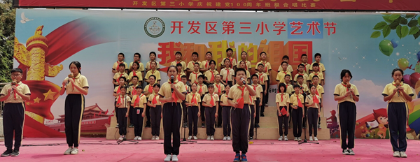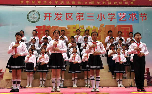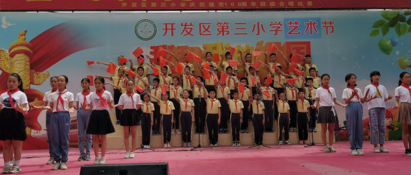 為慶祝中國共產(chǎn)黨建黨100周年,進一步加強小學生思想道德建設,踐行社會主義核心價值觀,激發(fā)學生愛黨、愛國的熱情,聽黨的話,跟黨走?;鹁骈_發(fā)區(qū)第三小學于5月31日上午,在校園的鳳凰臺舉行了“童心向黨 喜迎百年”合唱比賽。