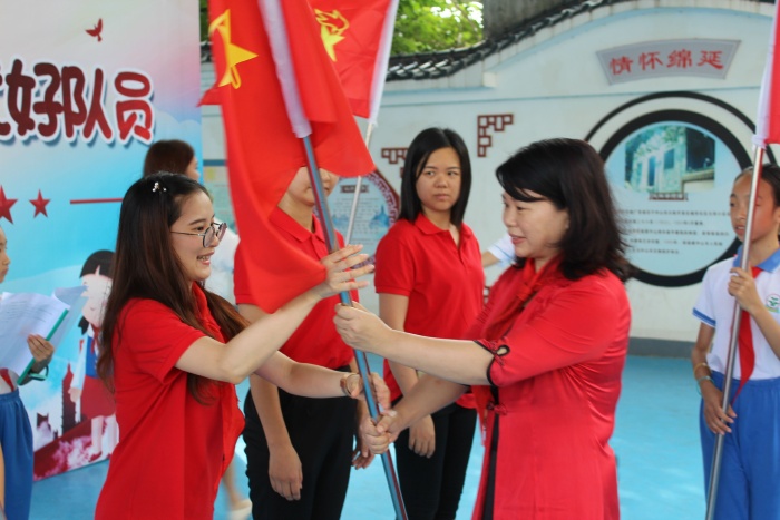 5月26日上午,在黨支部書記胡冬梅的帶領(lǐng)下,全體新隊員們排著整齊的隊伍,在家長的陪同下來到學(xué)校大榕樹下,入隊儀式在雄壯有力的出旗中拉開了序幕。隨后,全體新隊員高唱《中國少年先鋒隊隊歌》,鏗鏘嘹亮的歌聲唱出了隊員們的信心和決心。在鮮艷飄揚的隊旗下,大隊輔導(dǎo)員阮結(jié)連老師宣布了新成立的中隊及新隊員名單。家長親自為新少先隊隊員戴上了鮮艷的紅領(lǐng)巾,新隊員們按捺不住心中的喜悅之情,滿臉興奮,迫不及待地與親人分享,并鄭重地向親人敬了隊禮。胡書記對新隊員們提出了新的希望和要求,勉勵新隊員要用實際行動爭當(dāng)一名好好學(xué)習(xí)、好好鍛煉的新時代好隊員。