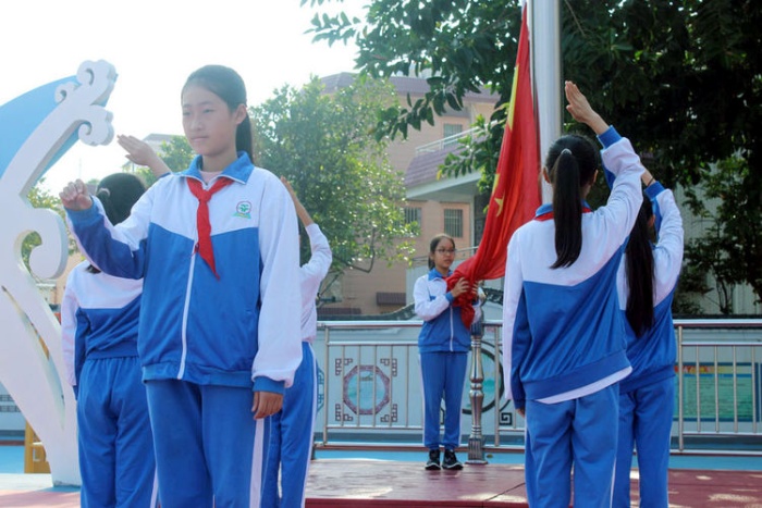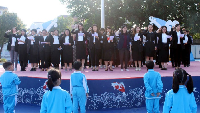 最后,胡冬梅校長還帶領(lǐng)全體教師在莊嚴(yán)的國旗下進(jìn)行了人民教師宣誓。