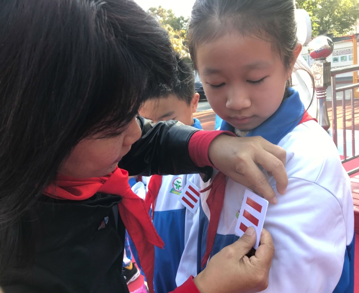 12月25日下午,大隊委候選人在學(xué)校綜合電教室進行了競選演講以及才藝展示。少工委副主任曹怡老師、大隊輔導(dǎo)員阮結(jié)連老師、少工委委員羅建平老師及二至六年級中隊委出席了此次活動。每位隊員用大方自信的演講,表達了自己對少先隊工作的熱情,為隊員們服務(wù)的熱忱以及對大隊委職責(zé)的認識和做好少先隊工作的堅定決心。隊員們富有激情的演講和精彩的才藝展示,不時贏得在座評委和隊員們的陣陣掌聲。評委老師和中隊委根據(jù)個人榮譽、特長、現(xiàn)場展示以及民主投票評分等綜合評定,共推選出13位優(yōu)秀的大隊委員。并在12月28日周一升旗儀式上,大隊部舉行了莊嚴的大隊委員授章儀式,胡冬梅校長為本屆大隊委員佩戴臂章。