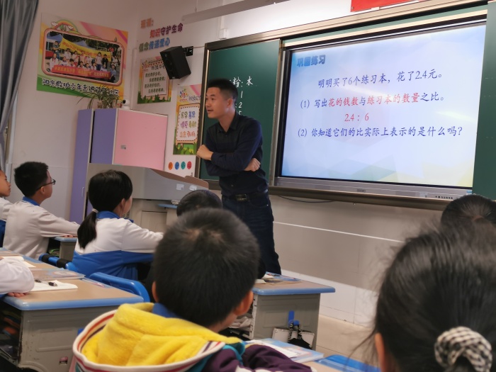 張立超老師巡視校園整體教學(xué)情況后,聆聽了六(2)班莫與談老師執(zhí)教的一節(jié)數(shù)學(xué)課《比的意義》。莫老師在充分做好學(xué)生前測的基礎(chǔ)上,以SOLO分類理論指導(dǎo)備課,制定了適宜的教學(xué)目標(biāo),精心設(shè)計(jì)了教學(xué)過程,整節(jié)課思路清晰,學(xué)生積極性高,課堂生成亮點(diǎn)紛呈,突出學(xué)生數(shù)學(xué)思維能力的發(fā)展。