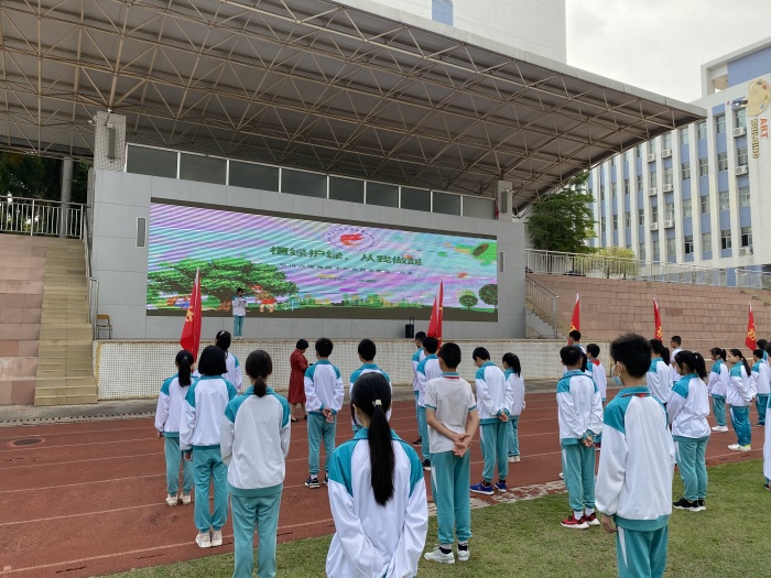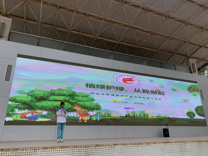 隨后,初二14班吳姿銳同學發(fā)表《植綠護綠,從我做起》主題演講,向全體師生發(fā)出倡議:牢固樹立“植綠護綠,共創(chuàng)美好家園”的理念,深刻領會植綠護綠的重要意義,營造植綠護綠的良好家園;積極培養(yǎng)植綠護綠的文明習慣,愛護一草一木一花一果,從自身做起,從腳下做起,時刻善待綠色生命;積極投身植樹等活動,自覺參與綠化、美化家園的公益活動。