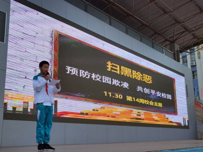 為深入貫徹十九大精神,切實(shí)保護(hù)學(xué)校全體師生的合法權(quán)益,維護(hù)校園的安全穩(wěn)定,杜絕校園黑勢(shì)力和欺凌現(xiàn)象的發(fā)生,11月30日上午,火炬二中面向全校師生開(kāi)展了一次“掃黑除惡進(jìn)校園,平安與我共成長(zhǎng)”主題校會(huì)。