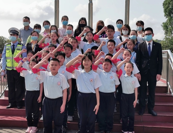 4月13日上午,新苗學(xué)校與火炬開(kāi)發(fā)區(qū)交警大隊(duì)聯(lián)合舉行了“校園小交警”宣誓儀式并召開(kāi)了“小交警”家長(zhǎng)會(huì)?;鹁骈_(kāi)發(fā)區(qū)交警大隊(duì)吳滿權(quán)警官、新苗學(xué)校校長(zhǎng)鄒麗、副校長(zhǎng)段岳華、德育主任黃俊、中山市交通安全宣傳義工周景輝律師、新苗學(xué)校22名“小交警”及其家長(zhǎng)參加了此次活動(dòng)。德育處黃俊主任主持宣誓儀式。