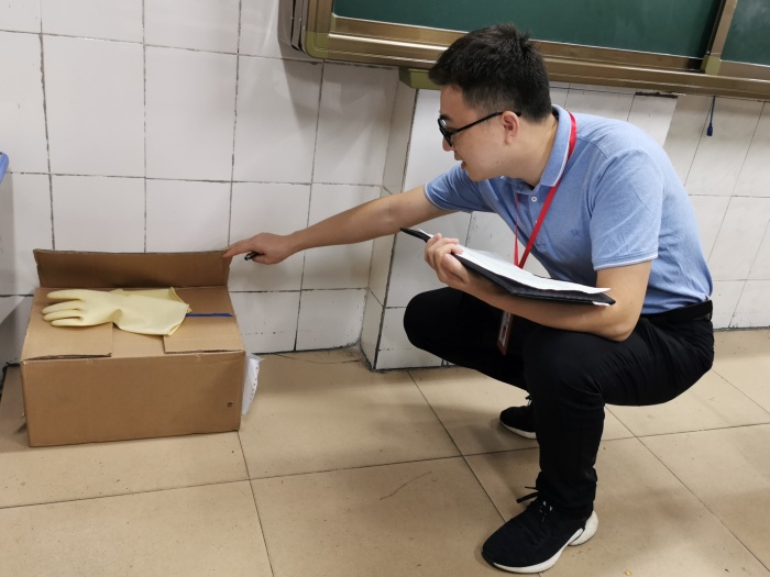 張立超督學(xué)首先認(rèn)真查看了學(xué)校常態(tài)化疫情防控情況下的門禁制度,對落實(shí)情況非常滿意,聽取了朱德友校長關(guān)于校園內(nèi)安全工作及疫情防控落實(shí)情況的介紹。他還走進(jìn)教室實(shí)地查看了教室里防疫物資的準(zhǔn)備情況,重點(diǎn)強(qiáng)調(diào)了教室里消毒粉的存放,一定要注意存儲安全,不能讓學(xué)生接觸到。