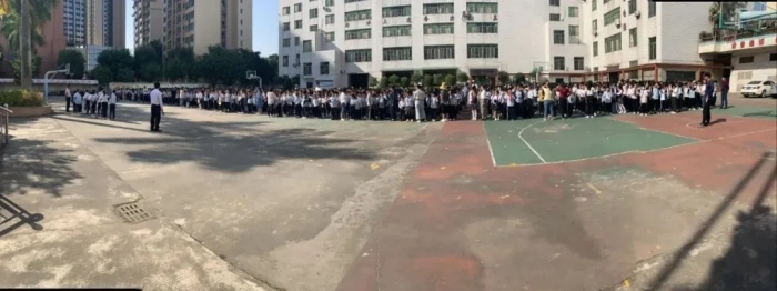 11月9日下午14點(diǎn)30分演練開始,隨著警報(bào)的響起,各位老師立即到達(dá)指定崗位,確保演練過程的安全,并指導(dǎo)學(xué)生有序快速疏散。各班班主任帶領(lǐng)學(xué)生根據(jù)演練方案中規(guī)定的路線,彎著腰,用濕紙巾或手等捂住口鼻,沿著學(xué)校指定樓梯口快速疏散,有序撤離到學(xué)校操場(chǎng)的安全地帶。