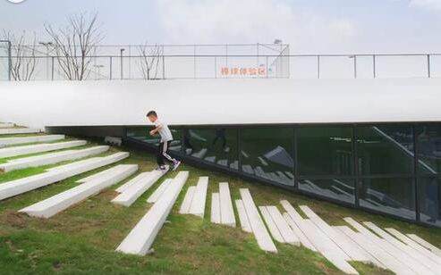 跑道上天,是云棲小鎮(zhèn)會(huì)展中心的一個(gè)創(chuàng)新之舉,但這種會(huì)變身的體育館并不是個(gè)例。滬昆高鐵大橋下的空間,搖身一變成了服務(wù)周圍居民的體育公園;