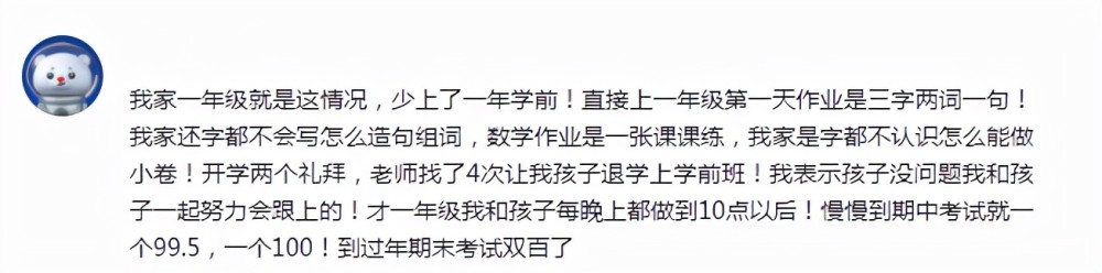 這位家長分享了自己孩子的遭遇后,有不少家長表示自己也經(jīng)歷過類似的事情。一位家長稱,她孩子剛上一年級的那半個月被老師以同樣的理由勸退了4次,好在她一再堅持才保住了孩子的學(xué)位,并且在她的努力輔導(dǎo)下,孩子的學(xué)習(xí)很快跟了上來。