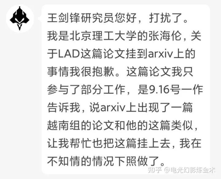 王劍鋒當(dāng)然很不滿意,難道arxiv也能“錯(cuò)誤提交”?作為提交者,雖然不是第一作者(但是是共同第一作者),也應(yīng)該負(fù)有主要責(zé)任。如果一字不差的全文照搬都不算抄襲,那么還有什么算抄襲?