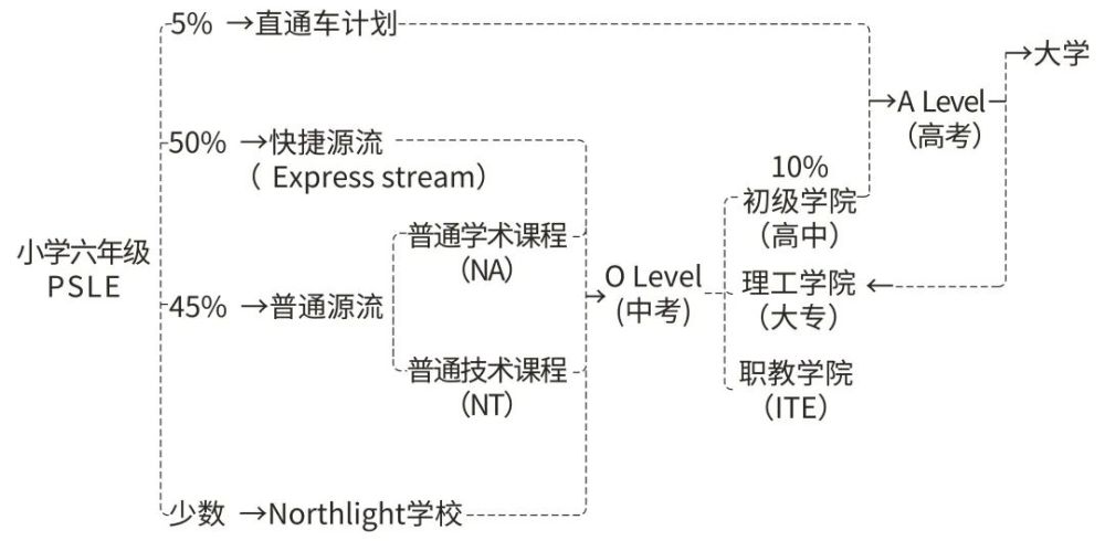 經(jīng)過層層分流,從四年級的GEP,到六年級的PSLE,再到O level,再到A level。
