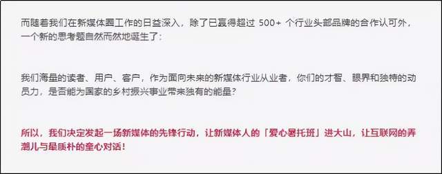 今年4月份,龍晶睛的善吟共益發(fā)起了一項(xiàng)短期“愛心暑托班”的活動(dòng),在微信公眾號中發(fā)起了一篇招募推文,名叫《新媒體人!和我們一起去支教!》。