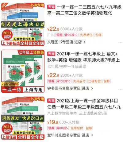 諸如《舉一反三》《一課一練》等知名教輔資料仍然在售,可能整治的重點(diǎn)目標(biāo)應(yīng)該是針對(duì)那些義務(wù)教育階段及學(xué)齡前違規(guī)校外培訓(xùn)課程和違規(guī)電子教材等。(以后還能不能銷售,未知)