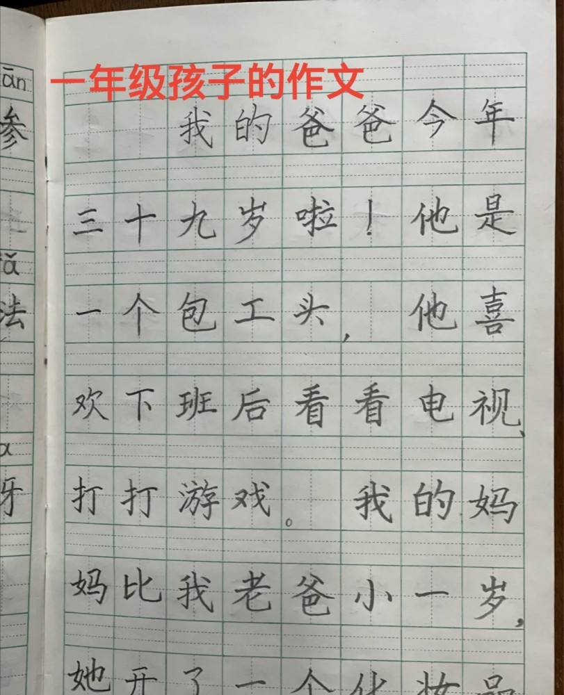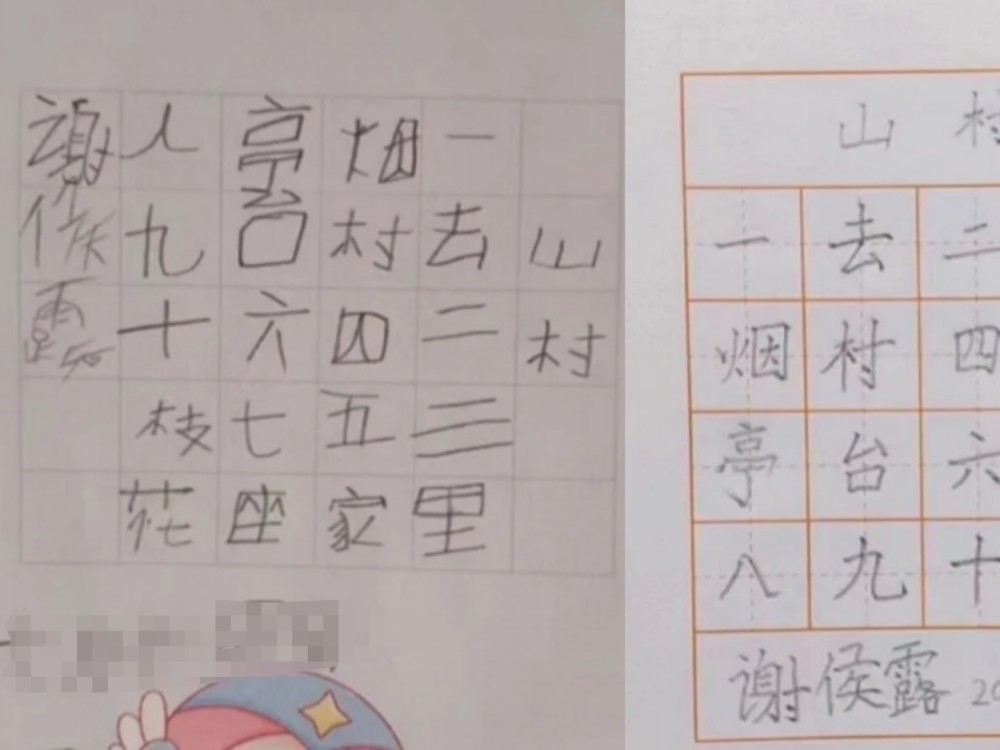 這個(gè)小學(xué)一年級(jí)孩子的家長(zhǎng)每天督促孩子練字,沒多久,孩子的字有了很大的變化,以前寫得七零八落的名字,現(xiàn)在變得工整緊湊了。