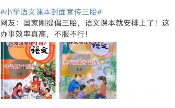 對此,在一結(jié)合小學語文教材封面所傳遞出的信息,有很多網(wǎng)友猜測可能是和三胎政策有關,相關部門為了提倡三胎政策才對封面進行了改變。