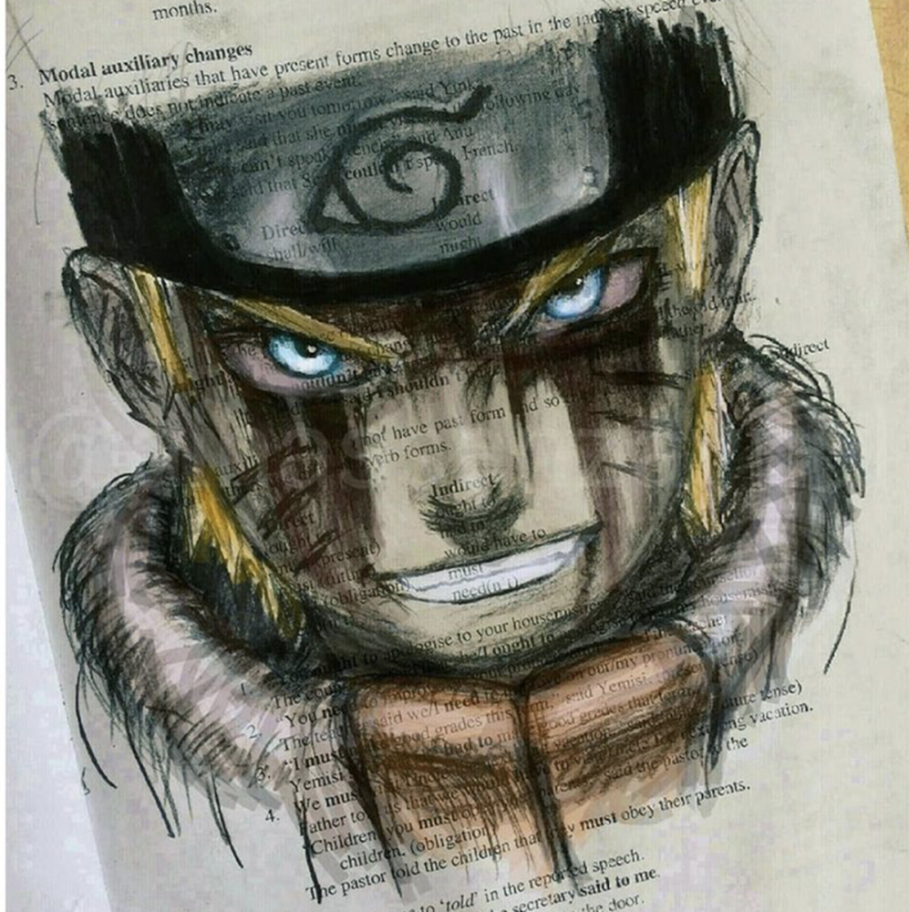 如果老師不過來看一看這位同學的課本,完全會覺得他是在上課認真聽講做筆記呢。其實他是在用彩鉛畫自己喜歡的動漫人物呢。