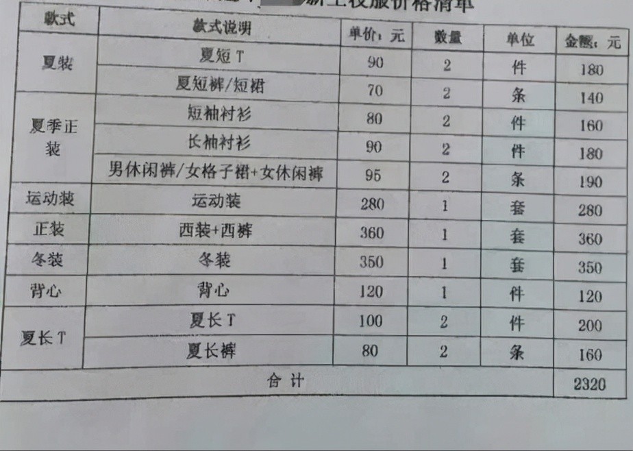 只是小學生買校服,能花多少錢呢?多數(shù)家長的最高承受范圍,不過是幾百元,超過三五百元的都接受不了,難道是上海的物價太高了?還是其他原因。其實看了清單后大家都能理解,校服并不是簡單的上衣下衣,包括夏季正裝丶運動裝丶正裝等多個服裝,每件校服都明碼標價。