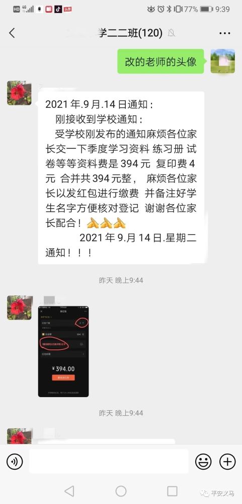 9月14日晚9點(diǎn)39分,在我市某小學(xué)家長(zhǎng)微信群里,突然出現(xiàn)了第二個(gè)班主任,這位“班主任”發(fā)布了一份以假亂真的學(xué)校通知,要求每位家長(zhǎng)以發(fā)紅包備注名字的方式上交學(xué)習(xí)資料費(fèi)共計(jì)394元。只是這位“假班主任”萬萬沒想到,群里的學(xué)生家長(zhǎng)中“藏”著真警察。不到一分鐘的時(shí)間,騙術(shù)被揭穿,家長(zhǎng)群里上演了一幕“教科書式”反詐行動(dòng)。