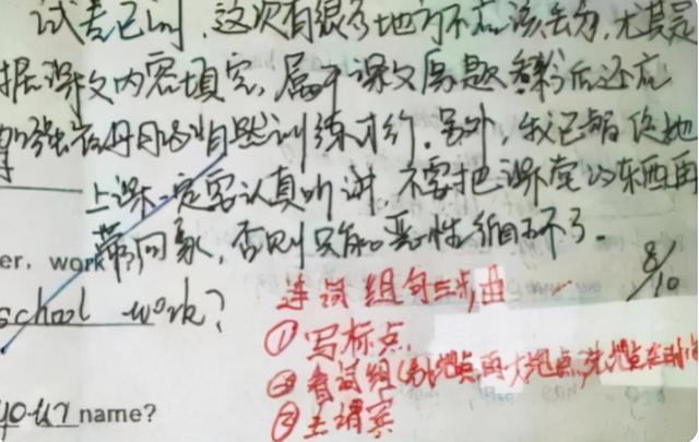 就在這樣的教育環(huán)境下,有的家長(zhǎng)的用心就會(huì)顯得格外貴重了,學(xué)生試卷上不僅有他們名字,甚至還有一些修改評(píng)語(yǔ)和總結(jié)。
