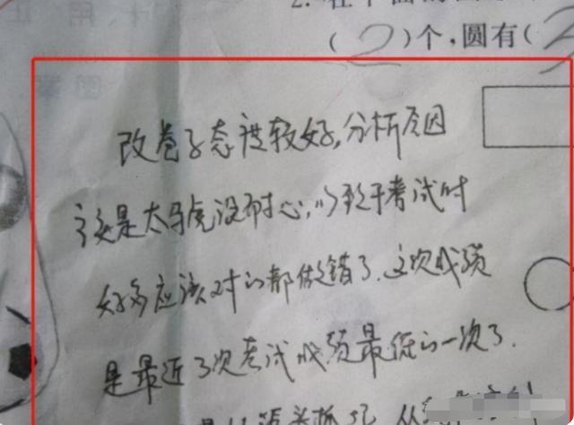 就拿這位家長(zhǎng)來(lái)說(shuō),他在試卷上寫下了學(xué)生改卷子時(shí)的態(tài)度,還分析總結(jié)錯(cuò)題原因,最后還寫了一段對(duì)學(xué)生鼓勵(lì)的話,這些都能表明他確實(shí)認(rèn)真看了孩子的試卷。