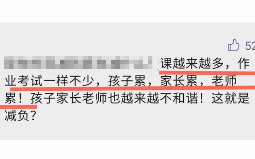 真正用來寫作業(yè)和輔導(dǎo)作業(yè)的時間非常少,導(dǎo)致學(xué)生回到家以后,作業(yè)量不僅沒有減少反而還有所增加。學(xué)生壓力反而更加,家長更是壓力倍增,卻又不能說出來,真的是有苦難言。