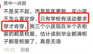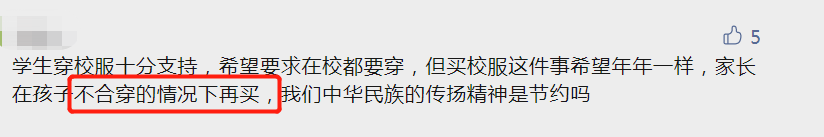 其實(shí)很多的家長(zhǎng)并不是反對(duì)學(xué)生穿校服,而是希望校服的款式不用年年換,在孩子不合穿的情況下再買。