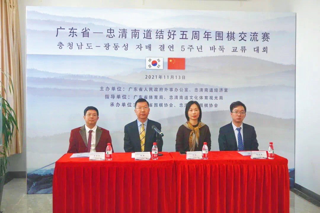 11月13日,廣東省—忠清南道結好五周年圍棋交流賽以線上形式在中韓兩地順利舉行。本次比賽以“以棋為媒,共敘友誼”為主題,由廣東省人民政府外事辦公室與韓國忠清南道經濟室共同主辦,廣東省體育局和忠清南道文化體育觀光局共同指導,廣東省圍棋協會和忠清南道圍棋協會承辦。