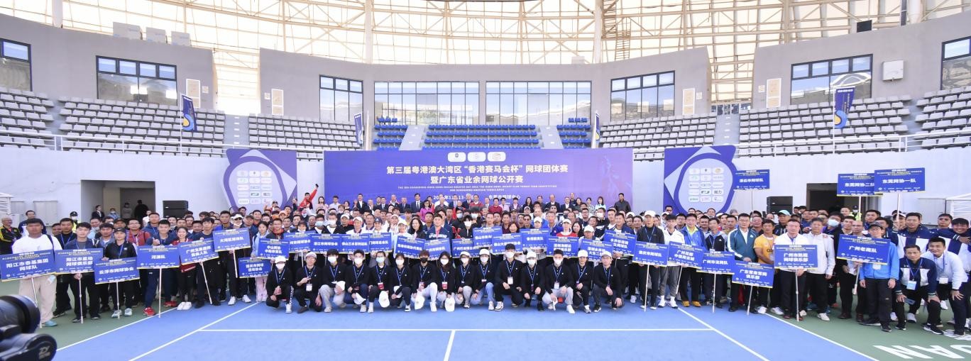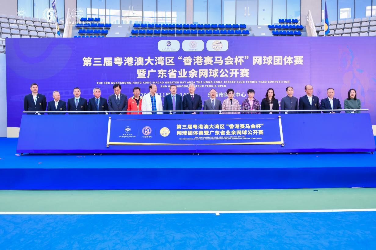 11月13日,第三屆粵港澳大灣區(qū)“香港賽馬會(huì)杯”網(wǎng)球團(tuán)體賽暨廣東省業(yè)余網(wǎng)球公開賽在東莞市網(wǎng)球中心盛大開幕。