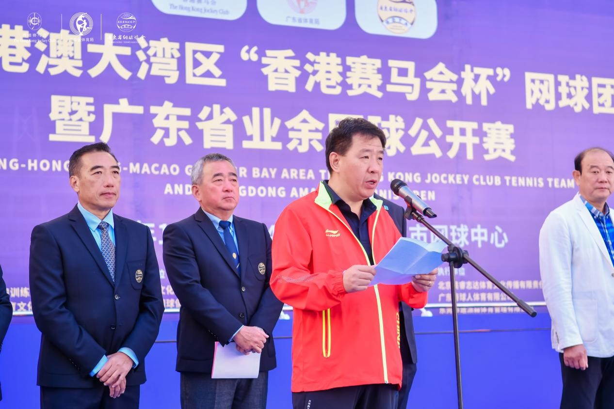 廣東省網(wǎng)球協(xié)會(huì)副主席賀東波代表廣東省網(wǎng)球協(xié)會(huì)和大賽組委會(huì),向前來出席和參加比賽的各位來賓、運(yùn)動(dòng)員表示熱烈歡迎!廣東網(wǎng)球有廣泛的群眾基礎(chǔ)和良好的網(wǎng)球氛圍,在今年全國第十四屆全運(yùn)會(huì)上,廣東群眾網(wǎng)球奪得3金2銀1銅的好成績。廣東省網(wǎng)球協(xié)會(huì)將繼續(xù)把賽事辦成粵港澳大灣區(qū)乃至全國具有影響力的品牌體育賽事,發(fā)揮網(wǎng)球在建設(shè)粵港澳大灣區(qū)中的凝聚力、感召力、參與協(xié)調(diào)力的作用,促進(jìn)體育交流與合作,助力2025年粵港澳全運(yùn)會(huì)的舉辦,推動(dòng)粵港澳大灣區(qū)體育事業(yè)的發(fā)展。
