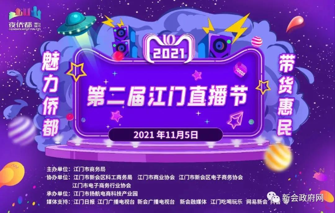 第二屆江門直播節(jié)是2021江門市“精彩·夜僑都”消費節(jié)系列活動之一。