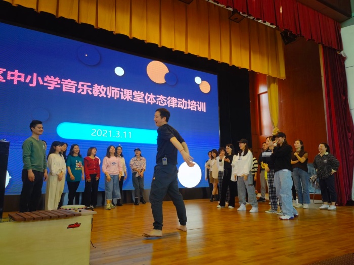 為了提高東區(qū)中小學(xué)音樂教師教學(xué)能力,豐富課堂形式,優(yōu)化教學(xué)手段,在東區(qū)教育事務(wù)指導(dǎo)中心趙海賓老師的大力支持下,我們邀請到了北京舞蹈學(xué)院創(chuàng)意學(xué)院青年教師謝呈博士為老師們展開了為期三天的“東區(qū)中小學(xué)音樂教師課堂體態(tài)律動培訓(xùn)”。