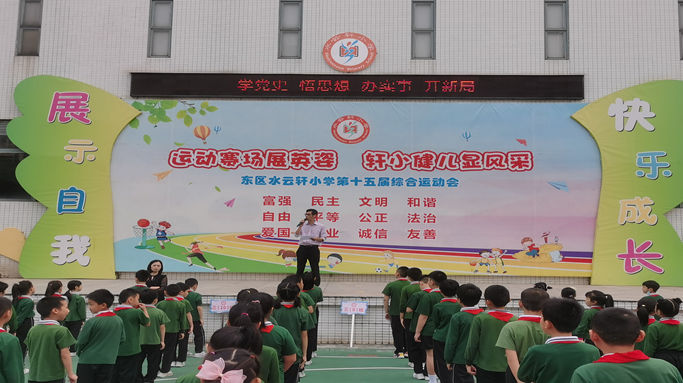 為慶祝中國共產(chǎn)黨成立100周年,大力弘揚(yáng)革命精神,在師生心中厚植紅色基因和愛國情懷,3月29日上午,東區(qū)水云軒小學(xué)舉行以“讀史明志,薪火相傳”為主題的學(xué)黨史啟動儀式,全校師生參加啟動儀式。