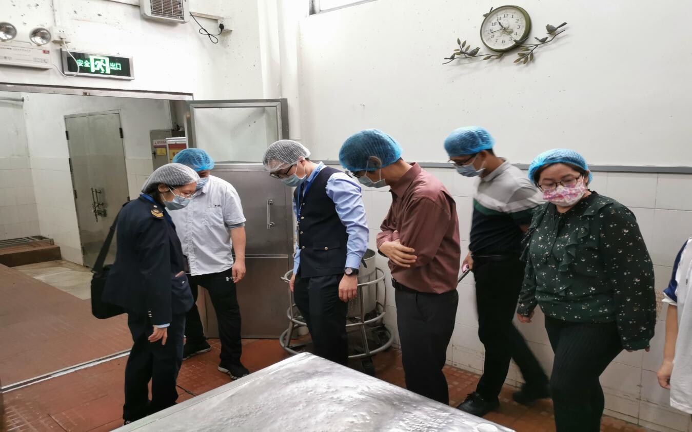 經(jīng)檢查,兩所學(xué)校整體食品安全狀況良好,食品加工烹調(diào)流程布局基本符合衛(wèi)生要求,學(xué)??鞕z室能夠做到每日對(duì)食材進(jìn)行檢測(cè),所使用的大米、食用油及調(diào)味料等均能提供對(duì)應(yīng)的檢驗(yàn)合格證明,餐具的清洗、消毒和保潔工作落實(shí)到位,人員的健康管理和場(chǎng)所消毒有完善記錄,食堂員工在工作時(shí)能做到正確佩戴口罩,分餐時(shí)規(guī)范佩戴手套,倉(cāng)庫(kù)中的食品能夠分類分架、離墻離地存放,貯存溫度符合要求。
