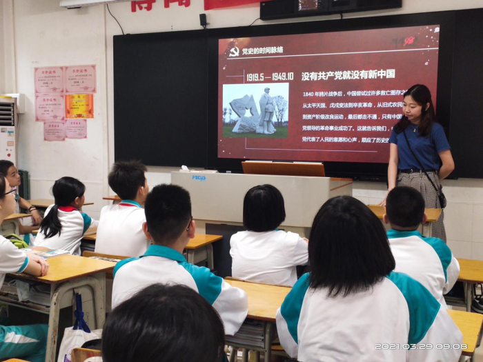 在早早讀中,班主任積極參與互動,通過講解一代代共產(chǎn)黨人艱苦卓絕的奮斗歷程,激勵中學(xué)生學(xué)黨史,知黨情,將個人奮斗目標(biāo)與社會、國家奮斗目標(biāo)聯(lián)系起來,做新時代厚德少年,以新面貌展現(xiàn)新作為。在各班營造了學(xué)史明理、學(xué)史增信、學(xué)史崇德、學(xué)史力行的濃厚氛圍。