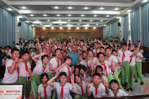 為引領(lǐng)大家認(rèn)識(shí)聲音,領(lǐng)略科學(xué)魅力,陳教授圍繞“聲音是怎樣產(chǎn)生的、如何聽到聲音?真的有獅吼功嗎?”等幾個(gè)方面,用妙趣橫生的圖像信息,幽默風(fēng)趣的科學(xué)語言,深入淺出的透徹講解,解釋了聲音的奧秘,為師生帶來了一場(chǎng)科普視聽盛宴。陳教授引用有力的數(shù)據(jù)與實(shí)例,從兩彈一星元?jiǎng)族X學(xué)森,到創(chuàng)作《歡樂頌》的交響樂王子貝多芬,再到用觸覺“讀”世界的海倫凱勒,娓娓道來,無不滲透對(duì)同學(xué)們的情感教育,向孩子們傳遞著對(duì)正確的人生態(tài)度。會(huì)場(chǎng)氣氛輕松、活躍,學(xué)生問答積極踴躍,師生互動(dòng)自然高效,高潮迭起,不時(shí)爆發(fā)出陣陣掌聲。活動(dòng)最后,陳光南教授與學(xué)生親密合影。