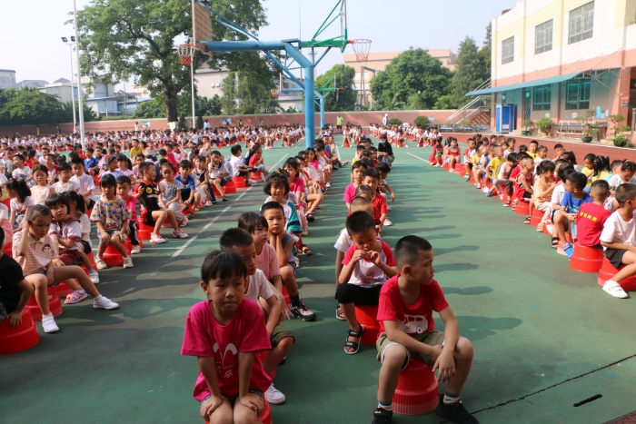 六年級(jí)的哥哥姐姐們到達(dá)了一年級(jí)新生的課室,將一年級(jí)的弟弟妹妹帶到了操場(chǎng),對(duì)甫人用這種特別的方式歡迎今年新入學(xué)的新生們。
