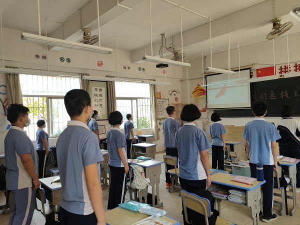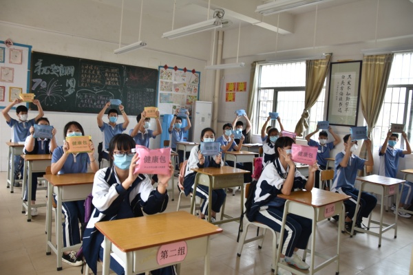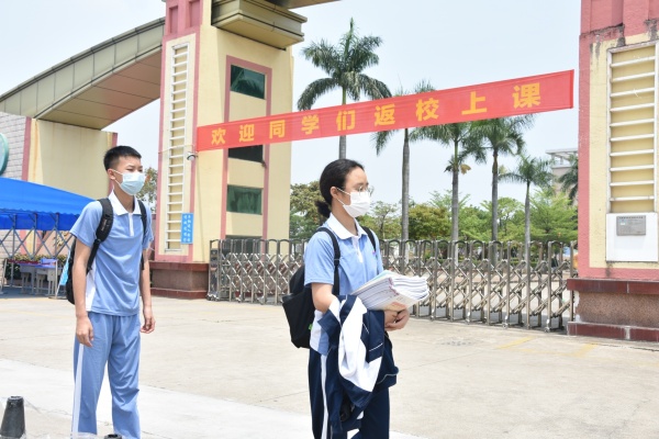 在校門口,有乘坐校車學生及騎自行車的走讀生錯峰陸續(xù)抵達校門口,學生們都能自覺佩戴口罩,保持一米以上的距離有序排隊,依次進入體溫監(jiān)測區(qū)域,沒有出現(xiàn)聚集的現(xiàn)象。進入校園后,學生們通過教室專用通道進入教室后,整齊地坐在教室內進行復學第一課的學習。”復學第一課“由中山市第一中學任山鵬老師擔任主講。以“天使歸來,英雄開講”為主題,邀請中山市第四批援鄂醫(yī)療隊隊長、中山市人民醫(yī)院ECMO研究室副主任廖小卒;中山市第二批援鄂醫(yī)療隊成員、中山市中醫(yī)院呼吸科醫(yī)師傅進藝等醫(yī)護人員,現(xiàn)場講述中山醫(yī)療隊馳援湖北的驚心動魄的經(jīng)歷。通過中山援鄂抗疫英雄的親身講述,班主任帶領學生回顧醫(yī)護人員及全國人民與新型冠狀病毒艱苦斗爭的歷程,從中理解英雄的含義,培養(yǎng)學生崇敬英雄、學習英雄、捍衛(wèi)英雄、關愛英雄的情感,進而感悟國家的強大、人民的團結。同時,通過介紹醫(yī)護人員精湛的醫(yī)術,引導學生明白刻苦學習是奉獻社會的重要基礎,從而增強學生的社會責任感。”復學第一課“結束后,學校還組織初三學生進行了防疫實操演練,包括洗手、用餐等。此外,在復學的第一天,每一位返校的初三學子都收到了一個特殊而又溫暖的禮物——健康包,這是由中山市民眾鎮(zhèn)政府贈送給學生的,希望它能給同學們帶來平安與健康。
