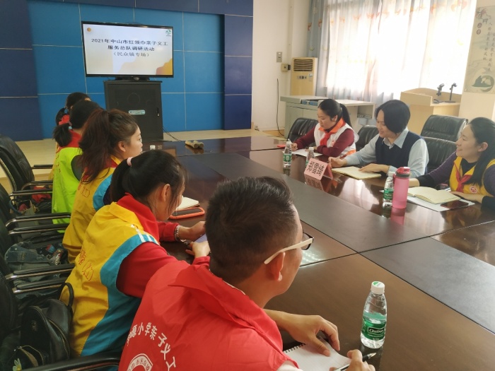 會(huì)議室中,民眾鎮(zhèn)6所公辦學(xué)校的紅領(lǐng)巾親子義工服務(wù)隊(duì)負(fù)責(zé)人參加了調(diào)研座談會(huì)。主持調(diào)研活動(dòng)的是中山市紅領(lǐng)巾親子義工服務(wù)總隊(duì)的鄭雪綺老師。鄭老師了解了民眾鎮(zhèn)各校紅領(lǐng)巾親子義工隊(duì)的概況、近年開展的活動(dòng)、特色和亮點(diǎn)、資金來源、激勵(lì)手段、遇到的困惑和問題等,并對(duì)民眾鎮(zhèn)以后開展紅領(lǐng)巾親子義工工作提出了寶貴意見。座談會(huì)上氣氛活躍、融洽,隨著每位老師們講述的聲音,進(jìn)入了一場(chǎng)又一場(chǎng)的親子義工志愿服務(wù)場(chǎng)景,現(xiàn)場(chǎng)感受到民眾鎮(zhèn)紅領(lǐng)巾親子義工服務(wù)良好的發(fā)展態(tài)勢(shì)。