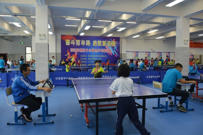 2021年3月26日,南區(qū)中小學(xué)乒乓球比賽在竹秀園中心小學(xué)舉行。比賽活動(dòng)由南區(qū)街道教育和體育事務(wù)中心主辦、竹秀園中心小學(xué)承辦,南區(qū)中小學(xué)共7個(gè)代表隊(duì),一百多名運(yùn)動(dòng)員參加。