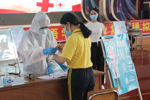 伴隨著夏風(fēng)習(xí)習(xí),這個(gè)超長寒假終于慢慢走向了終點(diǎn)。繼首批初三、高三學(xué)生返校復(fù)課之后,5月11日,初一和初二年級(jí)的同學(xué)們也將迎來復(fù)課,回到他們心心念念的教室開始正常的學(xué)習(xí)生活。為進(jìn)一步提高三鑫師生疫情防控意識(shí)和疫情應(yīng)急處置能力,嚴(yán)防疫情輸入校園,確保返校復(fù)課后良好的教育教學(xué)秩序,維護(hù)師生健康和安全。5月6日下午,紀(jì)中三鑫雙語學(xué)校初一、初二年級(jí)聯(lián)合生活部一起在學(xué)校體育館舉行了“第二、三批學(xué)生返校復(fù)課異常情況應(yīng)急處置演練”。 此次演練主要模擬的情景是“就餐中發(fā)現(xiàn)某學(xué)生咳嗽并檢測(cè)到發(fā)熱的應(yīng)急處置”。