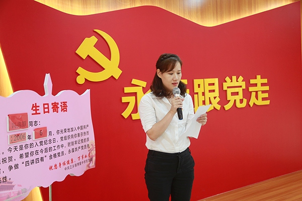 隨后,張政書記為過(guò)生日的黨員老師賀詞,并鼓勵(lì)他們時(shí)刻以黨員的身份嚴(yán)于律己,勇?lián)厝?,?zhēng)做模范,全體黨員共同為即將到來(lái)的“七·一”黨的生日獻(xiàn)唱一首《唱支山歌給黨聽(tīng)》來(lái)表達(dá)心聲。