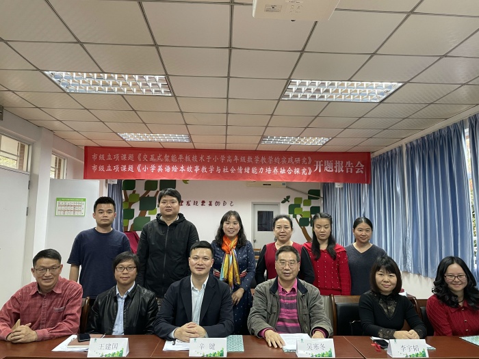 為扎實推進課題開展,不斷激發(fā)教師的科研熱情。2021年3月26日下午,三鄉(xiāng)鎮(zhèn)平嵐小學舉行了中山市教育科研2020年立項的課題《交互式智能平板技術于小學高年級數(shù)學教學的實踐研究》和青年課題《小學英語繪本故事教學與社會情緒力培養(yǎng)融合探究》的開題報告會?;顒友埩耸薪腆w局教師發(fā)展中心、市中小學教師信息技術應用能力提升工程2.0辦公室主任吳寒冬教授、市小學英語教研員辛鍵老師、五桂山學校李宇韜副校長、 三鄉(xiāng)鎮(zhèn)教育和體育指導中心王建國主任、 三鄉(xiāng)鎮(zhèn)小學英語中心教研組組長趙淑珍副主任。參會的還有劉杰校長、平嵐小學數(shù)學科組、英語科組以及兄弟學校的老師們。