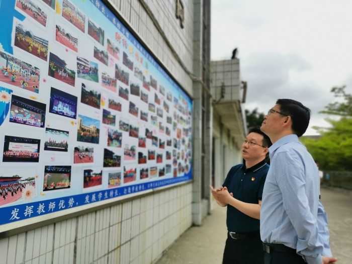 康樂小學(xué)吳偉標(biāo)校長向徐書記分別匯報了學(xué)?;厩闆r,辦學(xué)特色和成效,下一階段的主要工作思路以及學(xué)校所碰到的困難等,徐書記邊聽取匯報、邊詢問交流、邊巡查校園。當(dāng)徐書記了解到康樂小學(xué)注重常態(tài)管理,注重發(fā)揮師生優(yōu)勢,注重微改造優(yōu)化校園,注重開展豐富多彩的師生活動,并獲得教育部頒發(fā)的“全國籃球特色學(xué)校”時,非??隙▽W(xué)校的辦學(xué)成效和用心管理。