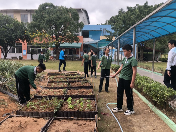 在勞動(dòng)實(shí)踐課基地,譚瑞香校長(zhǎng)向林偉強(qiáng)書(shū)記介紹了學(xué)校鄉(xiāng)村少年宮的特色種植課,每個(gè)班級(jí)都擁有自己的種植實(shí)踐區(qū),讓孩子們能夠走出教室,走近綠色,通過(guò)自己的勞動(dòng)見(jiàn)證綠色的成長(zhǎng),享受生命的感動(dòng)。
