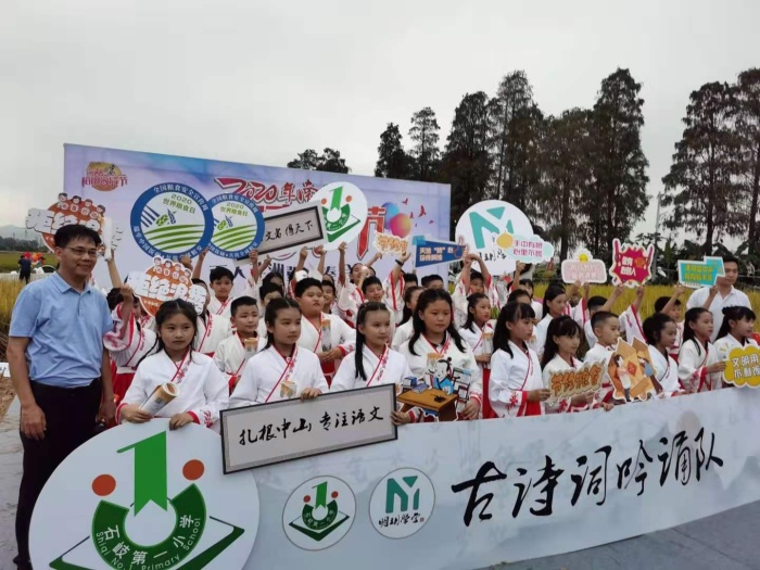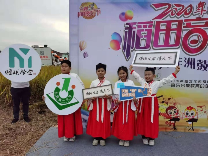 11月21日下午,石岐第一小學(xué)吟誦隊的同學(xué)們在梁小玲副校長和劉芳、黃雁娥老師的帶領(lǐng)下,來到南朗鎮(zhèn)左步村參加“2020年稻田音樂節(jié)”活動,為音樂節(jié)帶來了吟誦節(jié)目表演——《憫農(nóng)》。