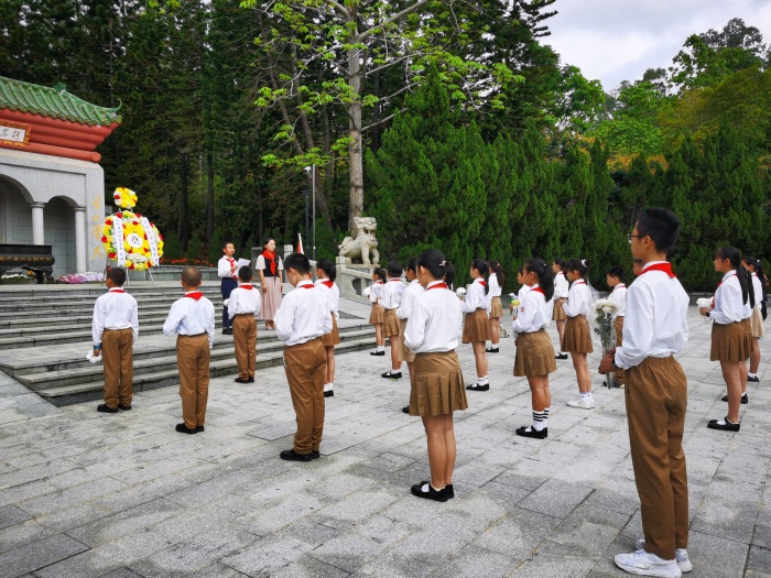 鳥兒鳴,紅花開,陽光照蒼柏,又是一年清明時。今年是中國共產黨成立100周年,為了對少先隊員進行愛國主義和革命傳統(tǒng)教育,中山市廣大匯翠學校少先隊大隊部組織五年級部分少先隊員前往中山革命烈士陵園進行“緬懷革命先烈,傳承紅色基因”清明祭英烈活動。